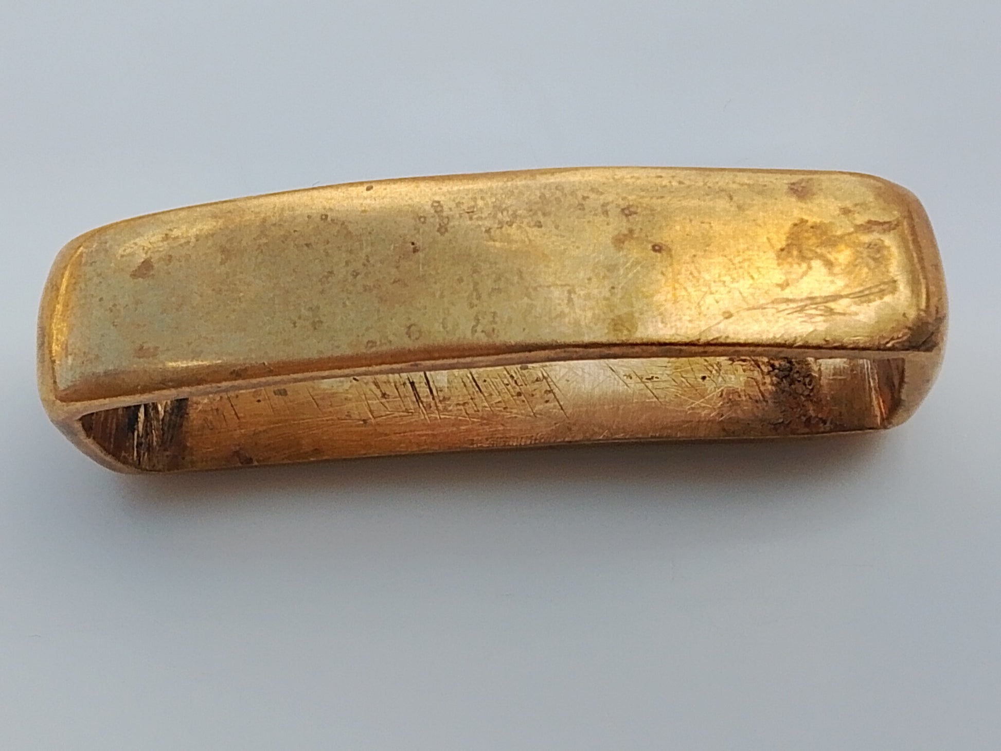 Matching brass loop for securing belt tail or strap end. Designed to pair with our 1½-inch buckle. Each piece weighs about 14.5 grams / 0.5 ounces and is made-to-order. Pre-orders close Nov 30. Expected shipping mid-Dec 2025.